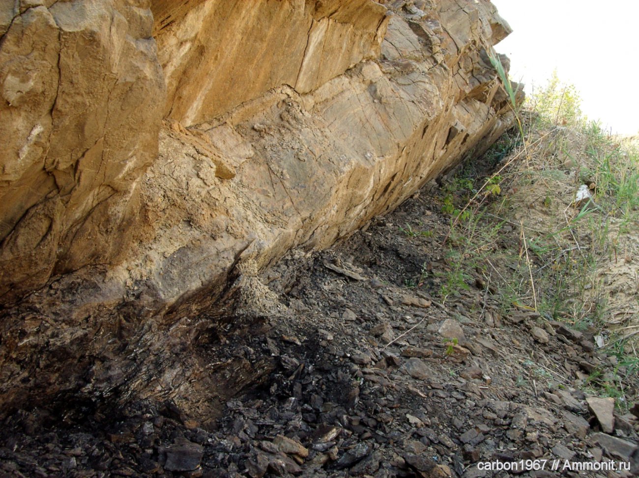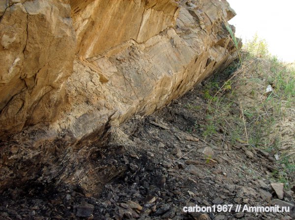 А окаменелости, они под скалой, в темном слое? | ||||||