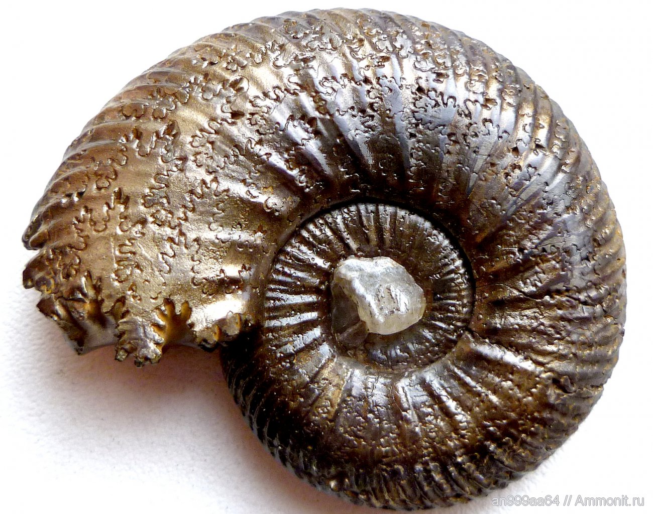 аммонит Quenstedtoceras lamberti с кристалликом гипса в серединке размером 4 см
