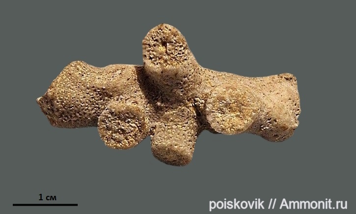 Фрагмент коралла найден рядом с фрагментами стеблей морских лилий в урочище Минестер. Длина - 4см
