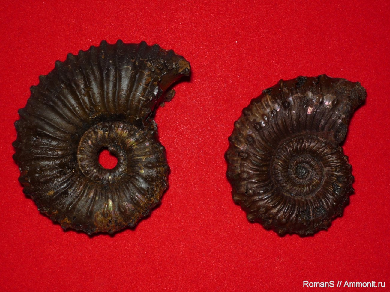 Мне тоже кажется,что слева не spinosum,у меня есть крупный,он конечно другой, круглее.Надо сделать дополнительное фото,аммонит не потерялся. | ||||||