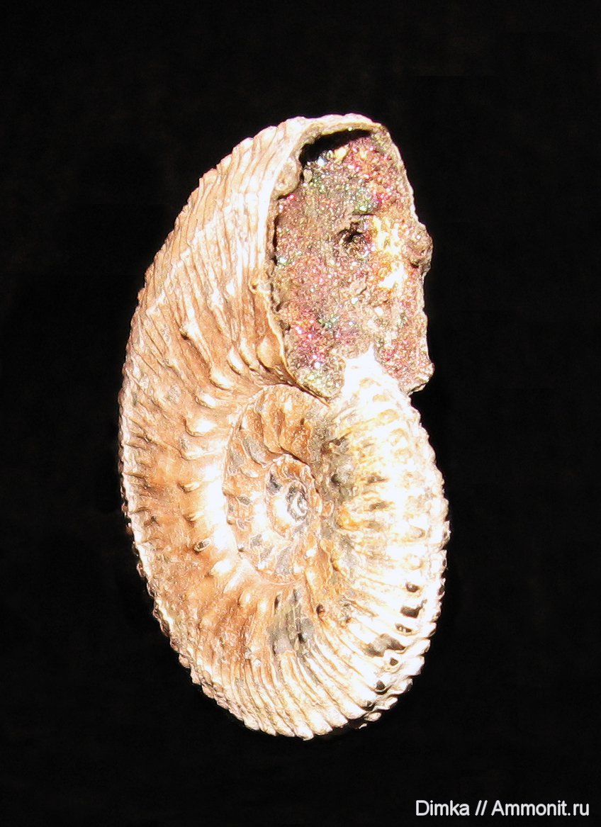 Найден в келловейской глине, в отвалах в карьере Змеинка. 2010 г. Диаметр раковины 34 мм.