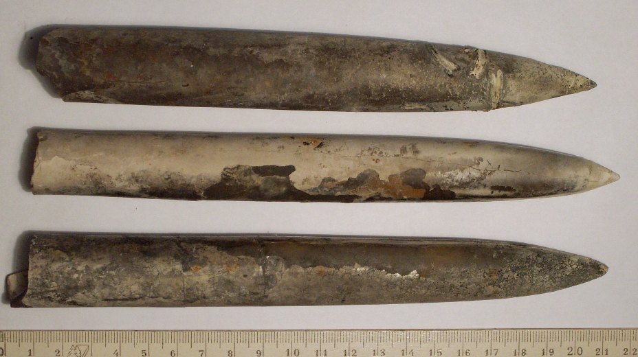 Вот я про него тоже вспоминаю. Только у меня он не сохранился (( Фрагмент был ну совсем облезлый и битый и я его кому-то отдал тогда (это я еще с практикой ездил от своего института), а кому уже и не помню. Потом жалел конечно. Я думаю что целиком тот белемнит мог быть минимум раза в два длиннее этих, а то и в три. | ||||||