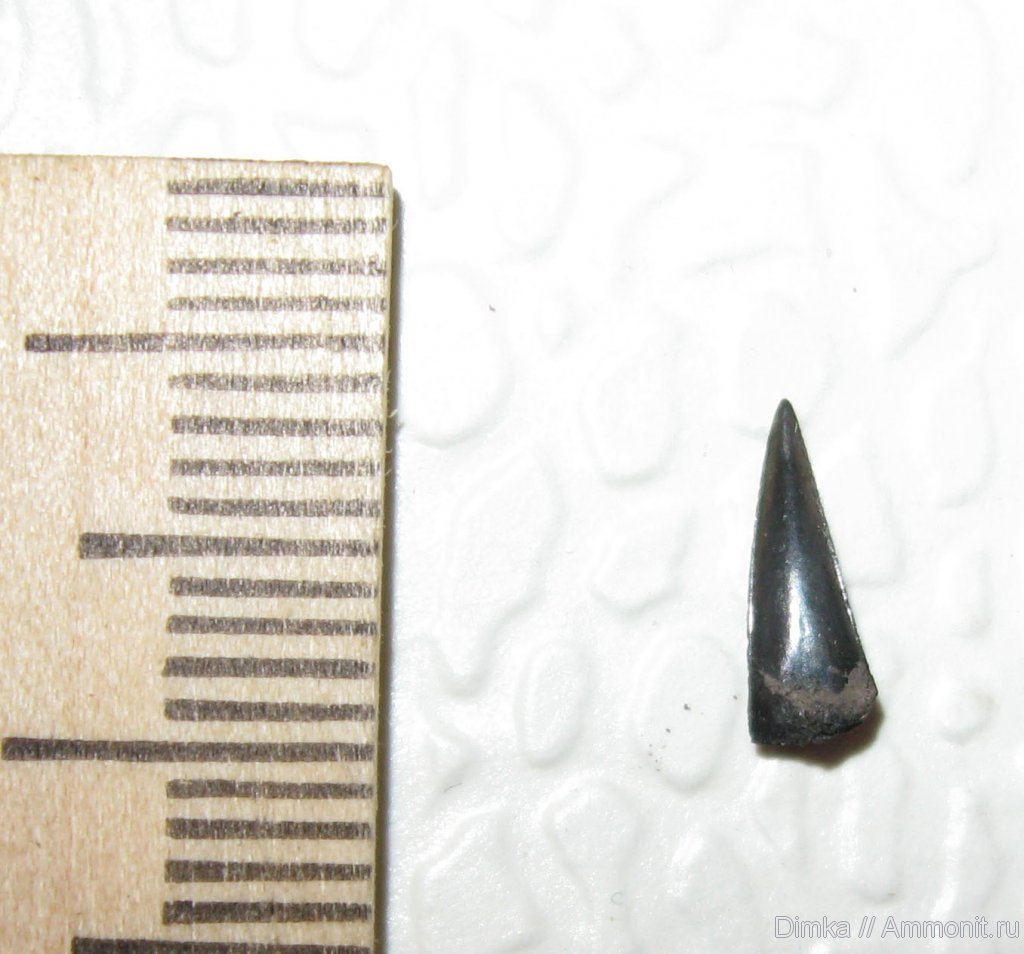 Небольшой зуб древней акулы, вероятно Sphenodus sp. был найден в нижнекимериджских глинах на р. Волге около г. Кимры.