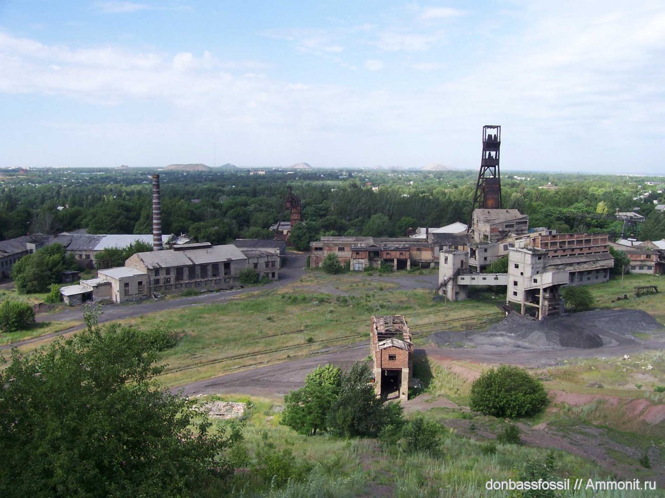 Практически все, что я нашел, найдено на терриконах. Это вид с одного из них на стоящие рядом копер и шахтные сооружения. Считайте, что это место находок. | ||||||