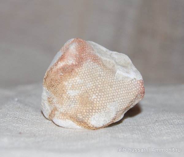 Найдена в 1995 году на берегу реки Волга в районе г.Вольск. Было высказано мнение, что это мшанка, причем скорее всего из меловых слоев.