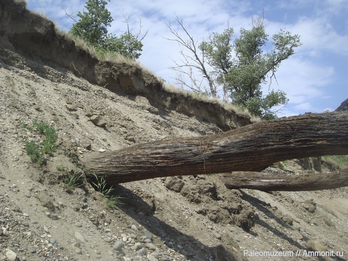 Адыгея, р. Белая, четвертичный пер. Стволы погребенные под слоем ледниковой гальки. Сохранность этих стволов не очень хорошая.