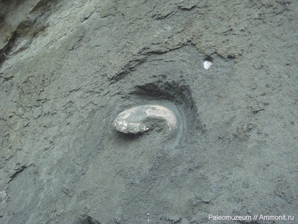 Адыгея, бассейн р. Белая, нижний мел, апт. Аммонит в коренных породах.