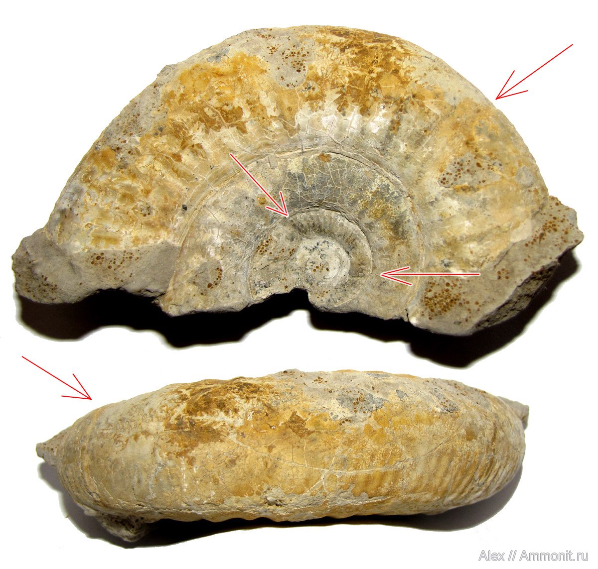 Тут ядро, поэтому ребра очень сильно сглажены, но вообще у меня ощущение, что не Choffatia там в позднем келловее были, а какие-то другие перисфинктиды, просто похожие. | ||||||