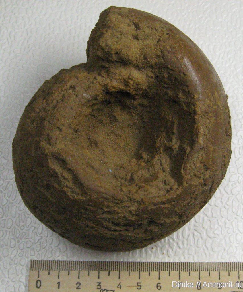 Аммонит найден на берегу р. Оки в келловейских песчанниках на высоте около 3х м. от уровня воды.