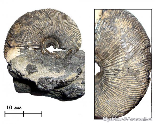 Другая сторона аммонита Zaraiskites quenstedti