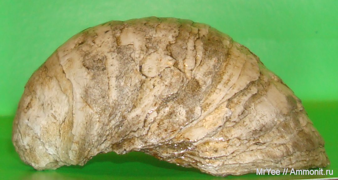 Интересный цвет у этой двустворки - белый. Обычно у юрских он серый или желтый, у меловых белый. Может этот образец из пограничной зоны юрского и мелового периода? | ||||||