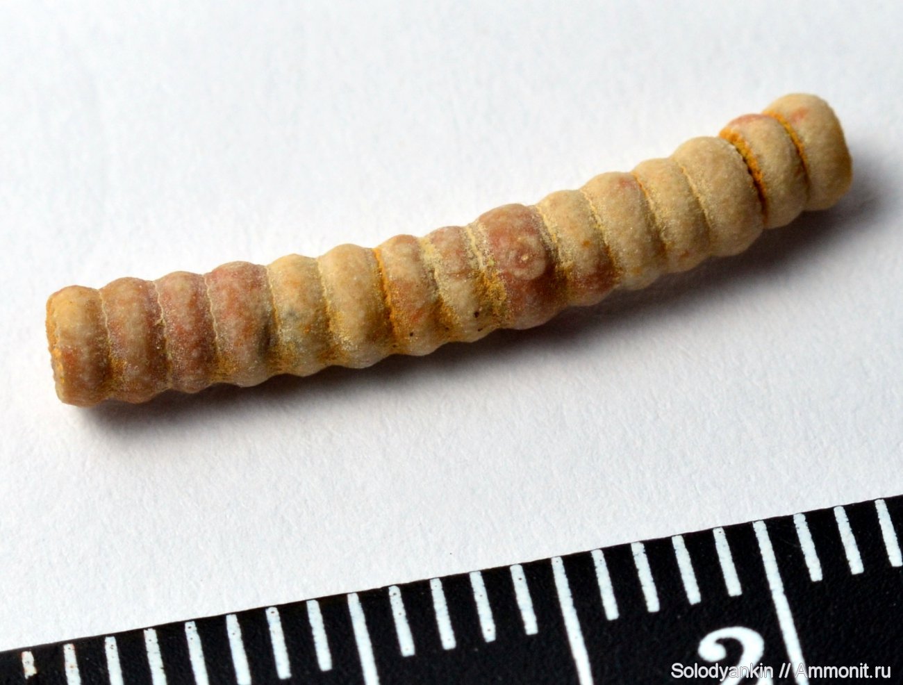 Я тоже недавно у себя нашла подобную сбоку. И форма похожа. Только размер мельче. До конца еще не отпрепарировала. Они очень быстро распадаются на отделные членики. Даже и не знаю, освобождать от породы, или так оставить. А вид установить реально? | ||||||