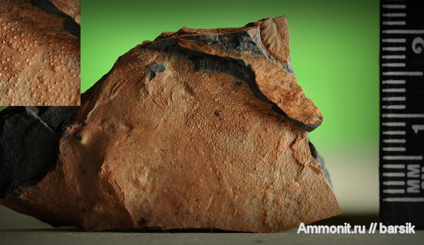 В отличии от предыдущего «парадного» снимка, впервые попался такой отпечаток. На сайте похожее не нашел. Что- то напоминает фрагмент панциря иглокожего, или может быть кожура какого-то крупного плода?