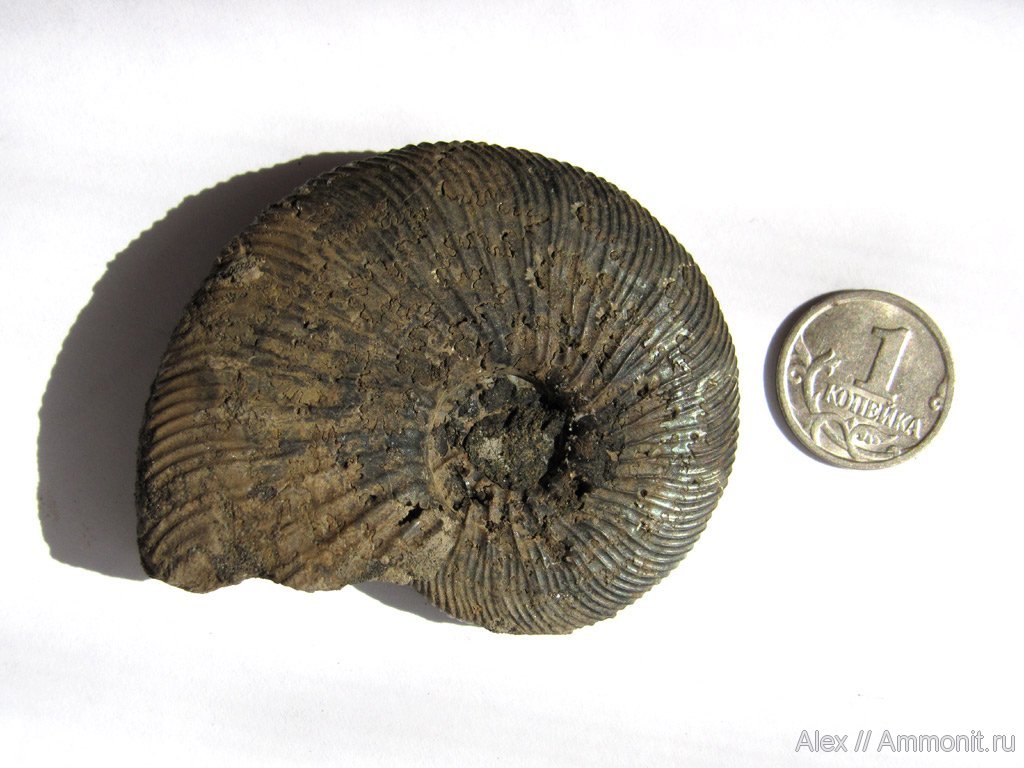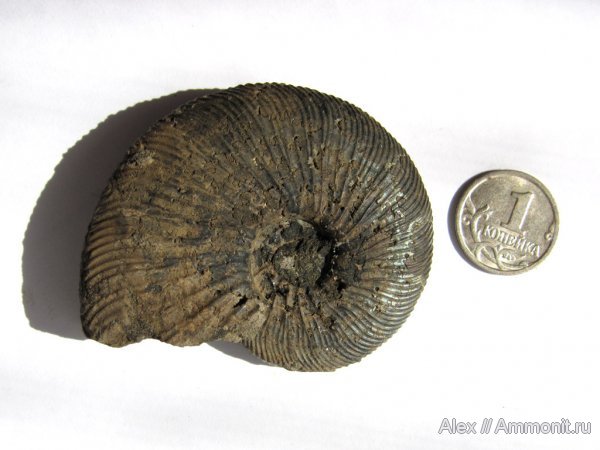 Аммонит Virgatites virgatus, найден в отвалах карьера у деревни Елкино. Один из самых распространенных видов аммонитов на Лопатинских карьерах.
