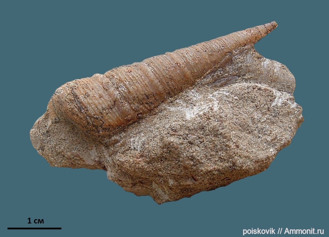 Брюхоногий моллюск - типичный представитель альбских отложений. Встречается в глауконитовых песчаниках. Длина - 4,5см.