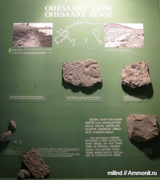 Музей Курессааре, зал с природными объектами, коллекция окаменелостей.