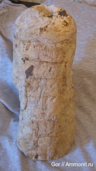 Найдено в осыпи стенки карьера.Высота 30 см,диаметр 12 см,диаметр отверстия в верхней части 3 см,глубина 4,5 см