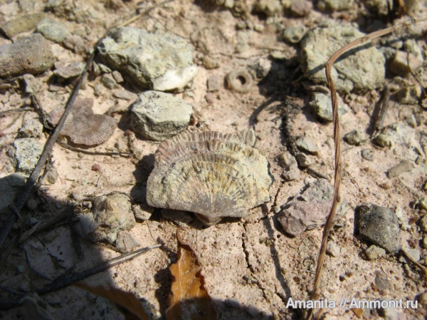 Это в основном находки из слоя глин, они должны лежать выше, чем слои глинистого известняка в карьере. Затрудняюсь отнести их к определённому горизонту, да они могут быть и перемешаны размывом.
