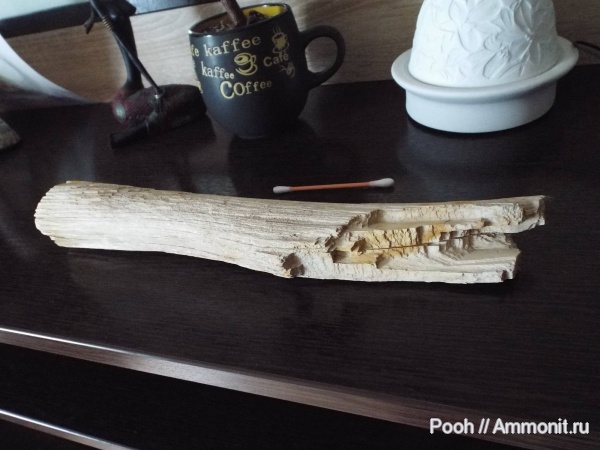 До этого имелось несколько потертых кусочков, найденных в полосе прибоя. А эти были найдены в песке под обрывом после сильных дождей. Хотелось бы услышать спецов по подобным деревяшкам. Каков их возраст? Из чего состоят?