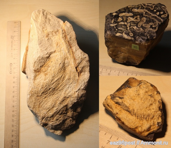 Ряд окаменелостей, собранных у подножья крутого высокого берега реки Угры. Встречались брахиоподы и хитетисы.