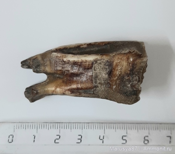 Найден окаменелый зуб. Бизона или лошади? Может кто-то подскажет чей он и примерный возраст окаменелости. Найден на песчаном берегу Оки.