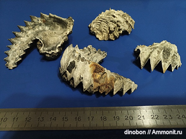 Устрицы Alectronia lopha. На фото слева, две створки одной устрицы. Верхний мел, Воронежская обл.