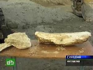 Как сообщают информационные агентства, в Ингушетии во время работ по добыче гравия в карьере были обнаружены бивни, челюсть и фрагменты черепа ископаемого слона, который обитал на этой территории 15-20 миллионов лет назад. Кости доисторического животного были найдены на глубине 50 метров.