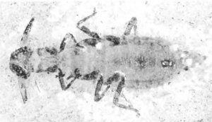 Дело в том, что в кишечнике паразита сохранились остатки его пищи - перьев птицы, на которой он жил. Этот экземпляр из Германии находится в превосходном состоянии. Находка не только подтверждает, что вши - очень древняя группа насекомых, но и дает основания предположить, что птицы, возможно, унаследовали паразитов от ранних крылатых ящеров.