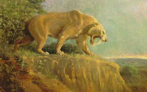 Саблезубые тигры (Smilodon fatalis) жили в Северной и Южной Америке в период с 1,8 миллиона до 10 тысяч лет назад. Они отличались невероятно длинными клыками, достигавшими 17 сантиметров. Чтобы захватить добычу, тигр мог раскрывать рот на угол до 120 градусов.