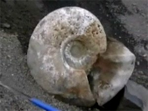 На фото: один из обнаруженных палеонтологом Эдуардо Оливеро аммонитов.