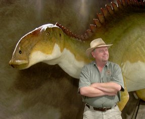 На фото – Натан Мерфи около макета найденного им гадрозавра Леонардо.