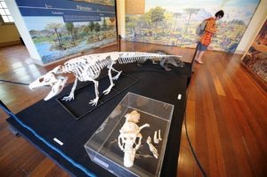 На иллюстрации - реконструкция скелета и найденные кости крокодила Armadillosuchus arrudai в музее Рио-де-Жанейро. Иллюстрация с сайта www.google.com