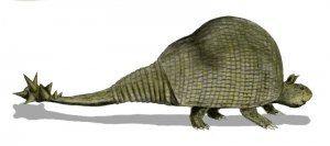 Глиптодонты (семейство Glyptodontidae) появились в Южной Америке еще в миоцене, своего расцвета достигли в эпоху плейстоцена и вымерли уже в голоцене, совсем недавно, 8-10 тысяч лет назад. Сравнимые по размеру с небольшим автомобилем, глиптодонты были закованы в прочную броню. Их тело сверху и с боков покрывал мощный шарообразный панцирь, небольшая панцирная пластинка была и на голове. Основание хвоста, который заканчивался толстой костяной дубиной, было снабжено панцирем из нескольких прочных колец, состоящих из костных пластинок.