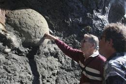 На фото - палеонтологи осматривают загадочный образец.