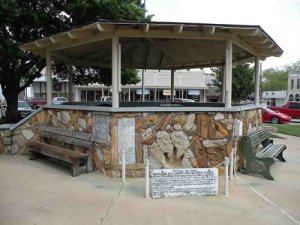 На иллюстрации вверху справа - здание сцены в городе Глен-Роуз, в которое вмонтирован след динозавра. Фото с сайта blog.smu.edu.