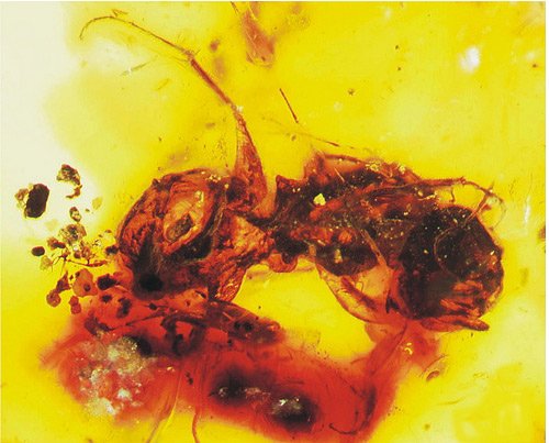 На фото - пчела, найденная в янтаре возрастом около 100 миллионов лет.