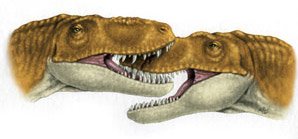 На иллюстрации вверху справа - реконструкция момента укуса. Один маленьких тираннозавр в процессе игры со всей силы кусает другого за нос. Иллюстрация Eryca Lyn Schmidt, сайт Университета Северного Иллинойса.