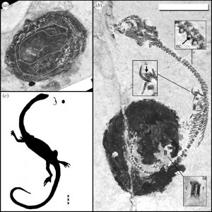 Американским палеонтологам и их китайским коллегам, изучающим отложения мелового периода в китайской провинции Ляонин (Liaoning Province) удалось обнаружить очень необычные окаменелости. Они нашли яйца древних рептилий, в которых сохранились окаменевшие эмбрионы. Когда-то эти яйца были покрыты мягкой кожистой оболочкой. Всего было найдено два яйца, одном из них находился эмбрион, а из другого успел наполовину выбраться крошечный детеныш рептилии. Сохранилась и скорлупа этих яиц, смятая и окаменевшая, но все-таки вполне пригодная для исследования.