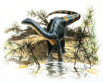 На иллюстрации - карликовый вид зауропод - Magyarosaurus dacus, один из обитателей острова Хатег. Иллюстрация с сайта www.creativelydifferentblinds.com
