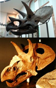 На фото вверху справа - черепа трицератопса (вверху) и торозавра (внизу). Фото с сайтов wikimedia.org и berkeley.edu.