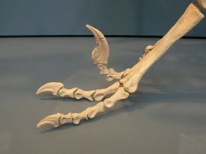 На фото - скелет лапы дромеозавра. Вот примерно такой лапой динозавр пытался раскопать нору млекопитающего. К сожалению, ни фотографий норы, ни фотографий следов этих раскопок найти не удалось. Фото с сайта en.wikipedia.org