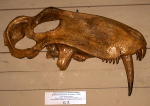 На фото - слепок черепа пермского звероящера биармозуха Biarmosuchus tener. Биармозухи относились к отряду терапсид (Therapsida), они жили в конце пермского периода, 255 миллионов лет назад. Череп найден в Ежовском местонахождении на территории Пермского края. Фото Юрия Токранова с сайта Районка.