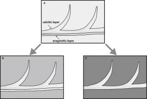 Различные двустворчатые и брюхоногие моллюски строят свои раковины из разных полиморфов карбоната кальция: как из арагонита, так и из кальцита (а у некоторых видов в раковине и кальцит и арагонит присутствуют совместно). А вот у головоногих моллюсков присутствие кальцита в раковине до сих пор не отмечалось – их раковины, как считалось, всегда были арагонитовыми. Все изученные палеонтологами и биологами раковины современных наутилусов, аммоноидей и палеозойских наутилоидей оказывались арагонитовыми. Но недавно в журнале Palaeontology вышла статья De Baets K., Munnecke A. Evidence for Palaeozoic orthoconic cephalopods with bimineralic shells (она в открытом доступе), посвященная неожиданному открытию – возможно, у двух родов палеозойских наутиллоидей (Dawsonoceras и Spyroceras) раковины состояли не только из арагонита, но и из кальцита.