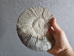 Аммонит Virgatites larisae Mitta, 1983, юрская система, волжский ярус, зона virgatus, встречается в подзонах virgatus и ivanovi.
