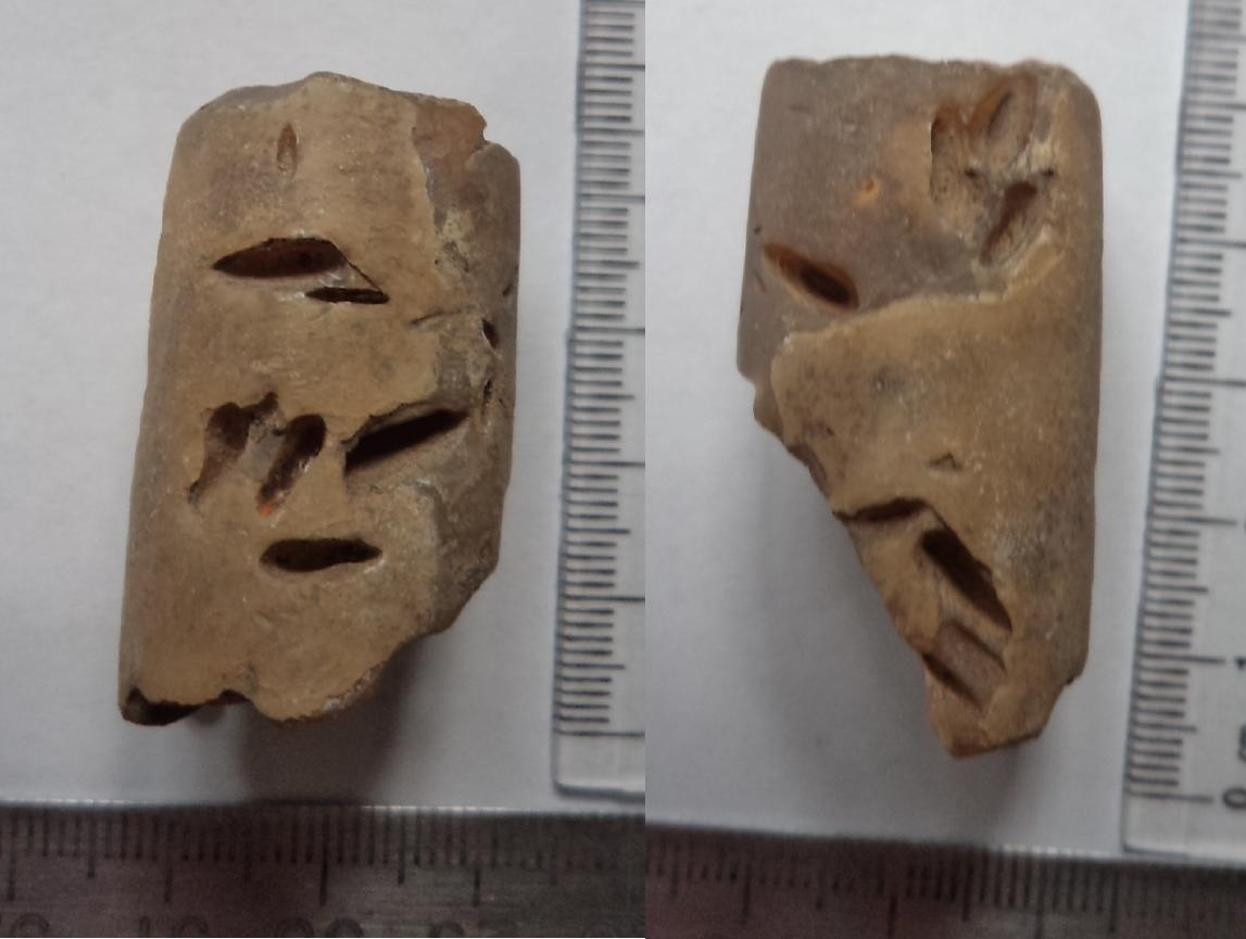 2) И второй вопрос. Повреждения на данном снизу фрагменте ростра нанесены прижизненно живым существом, или уже после фоссилизации какими-либо геологическими процессами?
