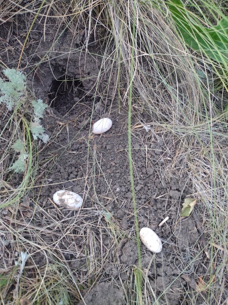 Разорённое гнездо ( кладка ) крупной змеи , возможно желтобрюхого полоза каким то местным Рики-тики-тави.