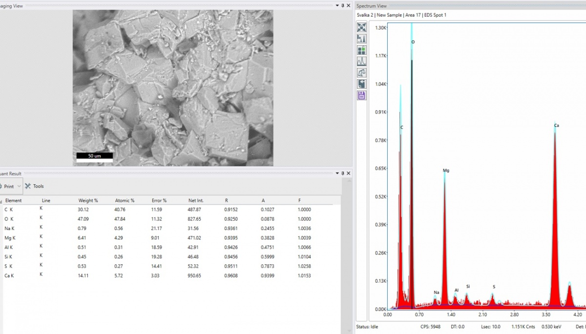 Доломит хемогенный чистейший. СЭМ свежего скола. В интерстициях между кристаллами доломита сидит сернистое битуминозное вещество. Картинка | ||||||