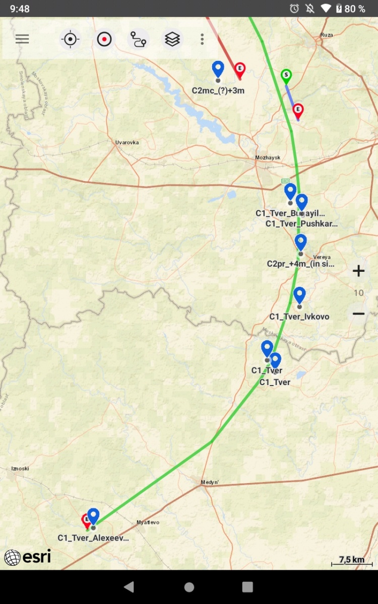 Бывал там. Разрез показался аналогичным. Мелкие (с дом) и крупные отторженцы сгружены по линии, соответствующей периферической части крупного ледникового фистона. По восточной и юго-восточной границе мощного экзарационного рва. Я выездил более-менее эти места. Смотри эту карту. Можно идти вдоль зеленой линии и осматривать вершины холмов, которые связаны своей положительной формой в рельефе с тем, что их бронируют прочные отторженцы. Там, где их разбуривали, проваливались через них в подстилающую морену. Небольшая часть из небольших отторженцев среднекаменноугольная. Но большая часть соответствует разрезу "Бугайлово". Пару раз видел глинистые блоки стеши.