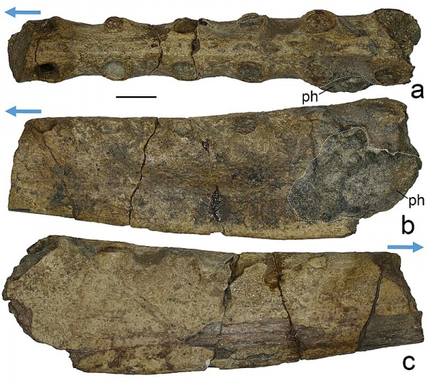 На днях вышла новая работа Александра Аверьянова, посвящённая находкам птерозавров в Саратовской области. Особого внимания заслужил симфиз челюсти, на основе которого был описан новый род и вид сеноманских птерозавров - Saratovia glickmani. От других зубастых птеродактилоидов её можно отличить по приподнятой плоской платформе на дорсальной стороне симфиза нижней челюсти между альвеолами; сама платформа пронизана многочисленными сосудистыми отверстиями.