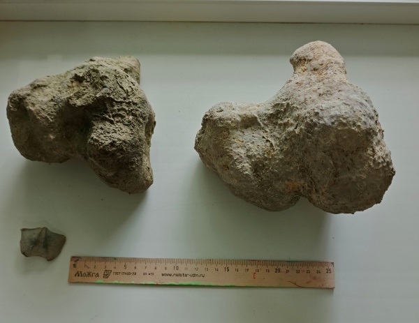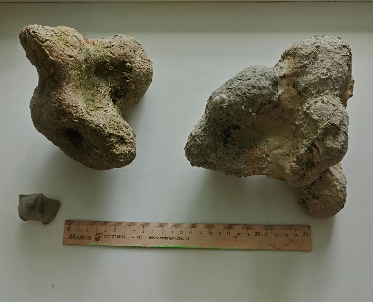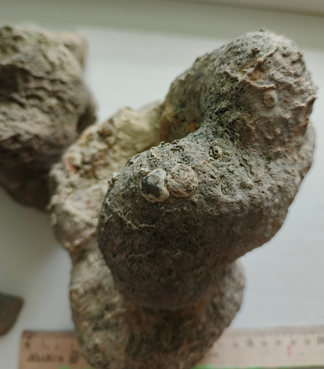 Там на одном желваке у вас фрагмент строматопоры сохранился.Строматопоры в верхнем девоне обрастатели, желваки больше для селура. Зря вы их в кислоте купали. Теперь вообще ничего не понятно. Остаётся только распилить. | ||||||